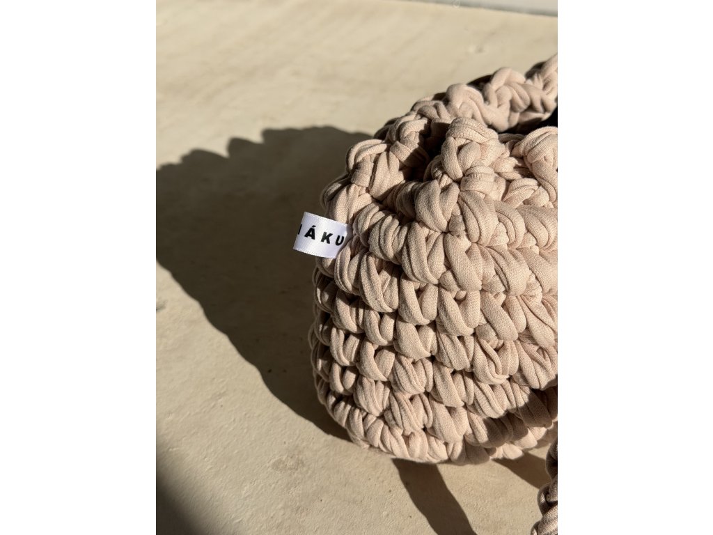 Háčkovaná bavlna je přirozeně pružná, takže při pravidelném nošení může kabelka lehce povolit. Nejde o vadu, ale o typickou vlastnost ručně tvořeného materiálu. Pro zachování původního tvaru doporučujeme také chránit kabelku před deštěm či jiným intenzivním kontaktem s vodou, který může její tvar trvale ovlivnit.