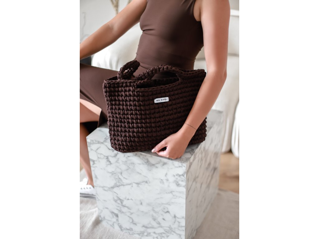 Háčkovaná bavlna je přirozeně pružná, takže při pravidelném nošení může kabelka lehce povolit. Nejde o vadu, ale o typickou vlastnost ručně tvořeného materiálu. Pro zachování původního tvaru doporučujeme také chránit kabelku před deštěm či jiným intenzivním kontaktem s vodou, který může její tvar trvale ovlivnit.